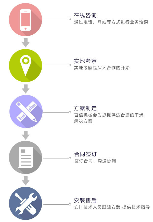 《江洲區(qū)食品藥材烘干設(shè)備網(wǎng)帶烘干機----百信設(shè)備》?合作流程: