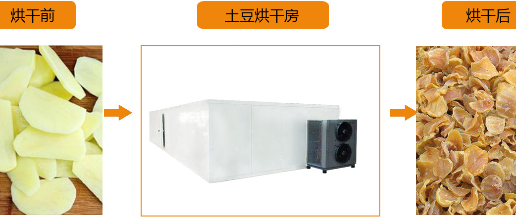 土豆烘干房以熱泵烘干機作為熱源,為目前國家著重推廣的節能產品,運行成本低,烘干過程不與外界接觸,全密閉式循環風路保證烘干衛生,就算是對衛生要求十分嚴格的食品加工企業也非常適用。